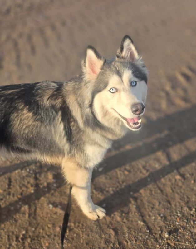 With the help of his breeder we’ve had him fostered but sadly he will struggle to live with other pets and children. He was fostered with another dog but was a bit of a bully and then reactive when our walking, he was ok with the cats initially and then began hunting them. As he’s not reliable around other dogs, and a Husky, we would be prefer he had his own private garden for off-lead exercise. He really will need an experienced sled dog adult-only home where he can learn boundaries and manners.